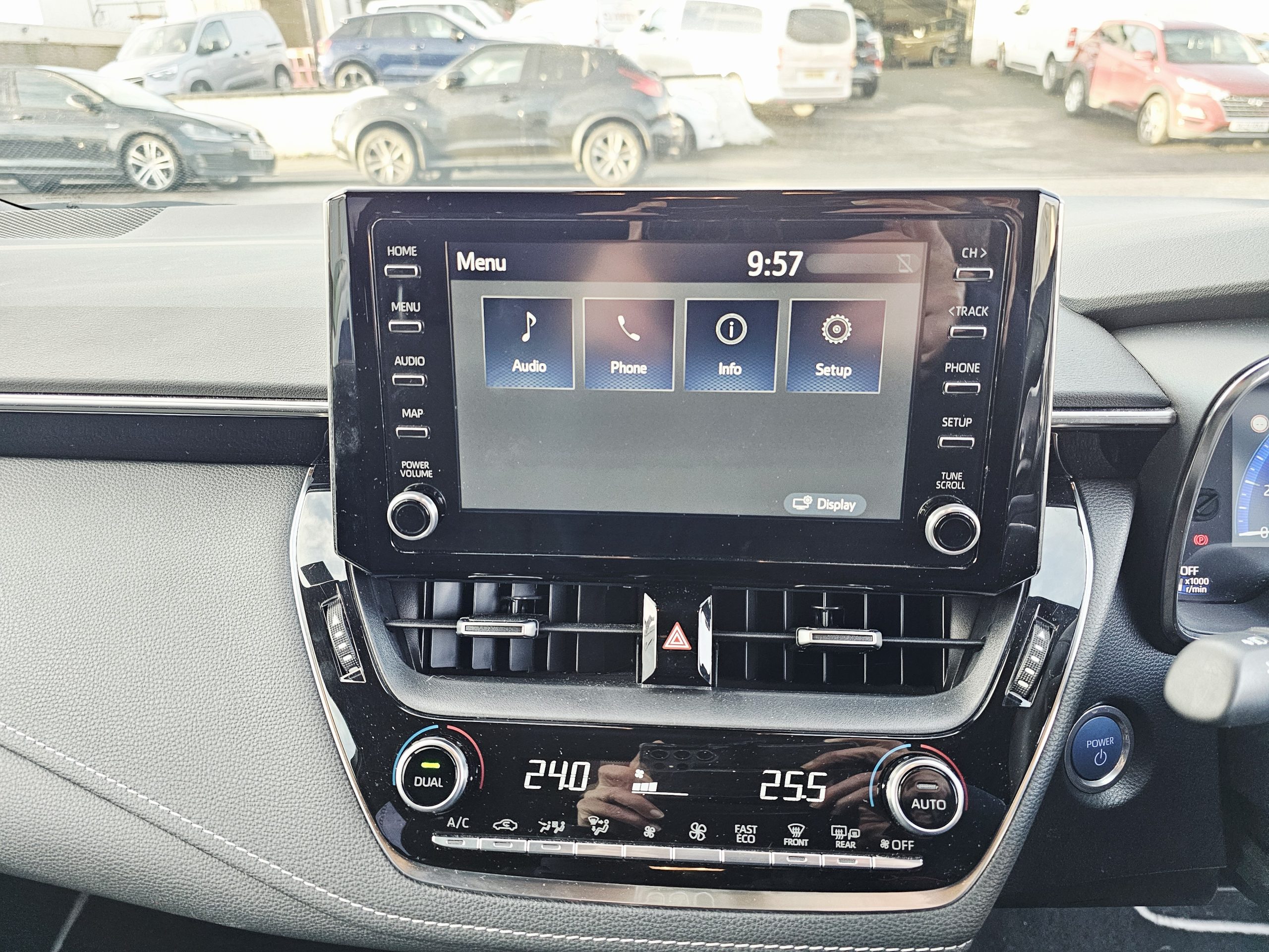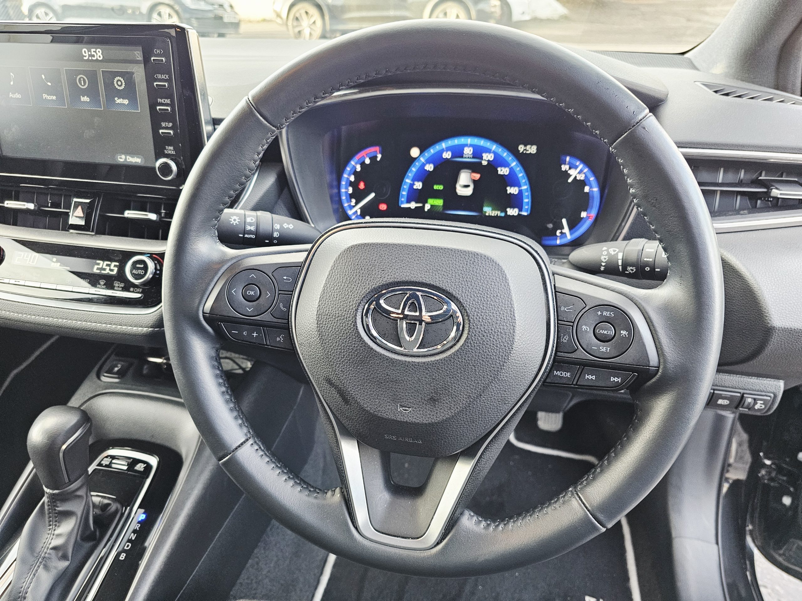 Stylish & Modern – A sleek estate with cutting-edge technology. 16in Alloy Wheels, 2-Ring Combimeters with Colour TFT Screen, 7in Colour TFT Multi-Information Display, 8in Touchscreen with MM19 Multimedia System, Acoustic Vehicle Alert System – AVAS, Adaptive Cruise Control with Speed Limiter, Alarm with Motion Sensor and Immobiliser, AM-FM Radio, Anti Lock Braking System – ABS with Electronic Brake-Force Distribution – EBD, Auto Headlights, Automatic High Beam, BA – Brake Assist, Bluetooth Connectivity, Boot 12V Power Outlet, DAB Digital Radio, Dual-Zone Automatic Air Conditioning, E-Call, Electric Power Steering – EPS, Electrically Adjustable Heated Door Mirrors, Electronic Parking Brake, EV Drive Indicator, Front 12V Power Outlet, Front and Rear Parking Sensors, Front Fog Lights – LED, Front Passenger Airbag On-Off Switch, HAC – Hill Start Assist Control, Headlights – LED, Heated Seats, Intelligent Park Assist, ISOFIX Fixing Points, Leather Steering Wheel and Gear Knob, LED Daytime Running Lights, MM19 with Go Navigation, One-Touch Power Windows, Pollen Filter, Power Lumbar Support, Push Button Start, Rear Window Wiper, Reversing Camera, Seat Belt – Pre-Tensioners and Force Limiters, Seat Belt Reminder – Front and Rear, Seatbelts – Adjustable Front Driver Seat Belt Extender, Shark Fin Antenna, Smartphone Integration – Apple Car Play and Android Auto, Space Saver Spare Wheel, Speakers x6, Steering Column – Tilt and Telescopic, Steering Wheel Switches, Supplemental Restraint System – SRS – Airbags – 7 Airbags, Toyota Safety Sense, Traction Control – TRC, USB and Aux In, VSC – Vehicle Stability Control, Wireless Remote Locking with Deadlocks